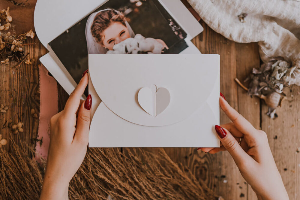 Całość zamyka się na kartonowe serce, które powstrzymuje pudełko przed otwarciem, dzięki czemu fotografie są bezpieczne
