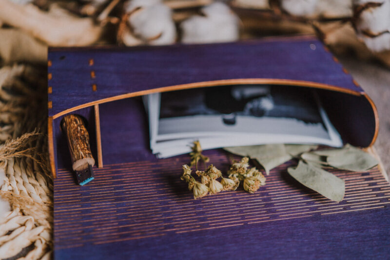 W cenę wlicza się: drewniane pudełko na fotografie i grawer laserowy na wieczku.