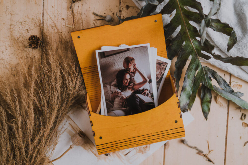 W cenę wlicza się: drewniane pudełko na fotografie i grawer laserowy na wieczku.