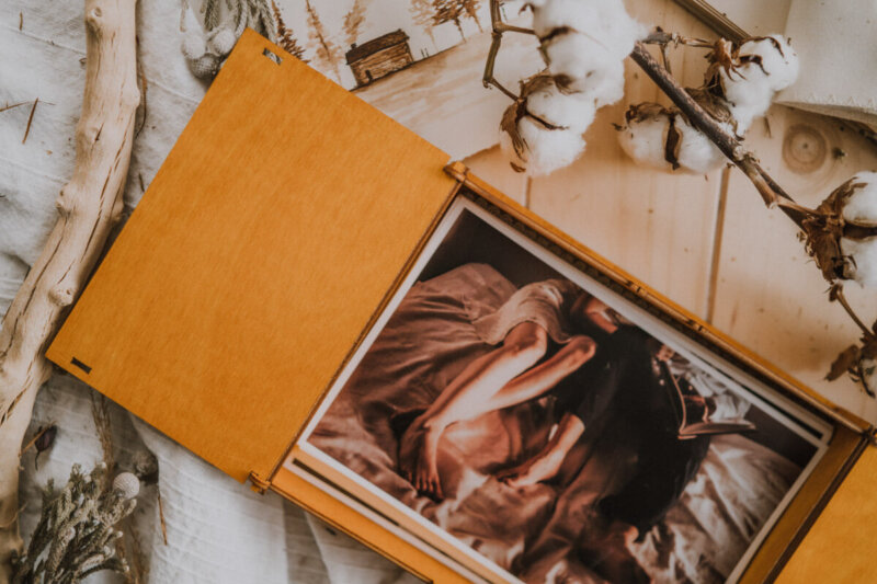 W cenę wlicza się: drewniane pudełko na fotografie i grawer laserowy na wieczku.