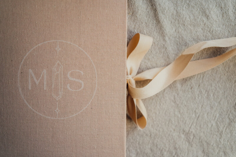 Wewnątrz pudełka znajduje się praktyczna wstążka, która ułatwia wyjmowanie fotografii. Wstążki znajdujące się na zewnątrz służą do zamykania pudełka, tworząc gustowną kokardę. Są to bawełniane wstążki, które kolorem przeplatają się z odcieniami okładki.