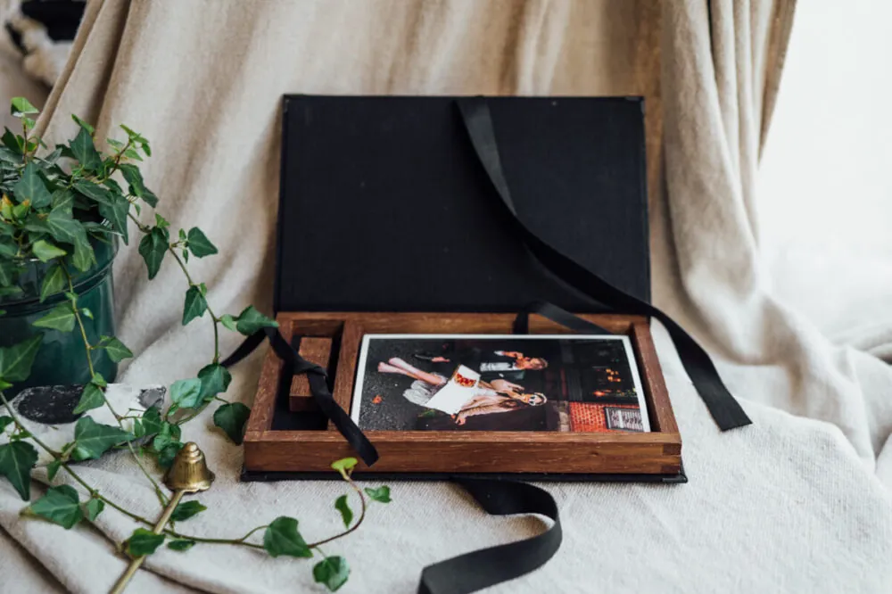 BASIC Drewniane pudełko na zdjęcia 13×19 cm z miejscem na pendrive