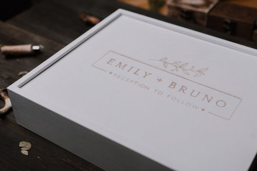 W cenę wlicza się: drewniane pudełko na album, spersonalizowany grawer laserowy na zasuwce, malowanie.