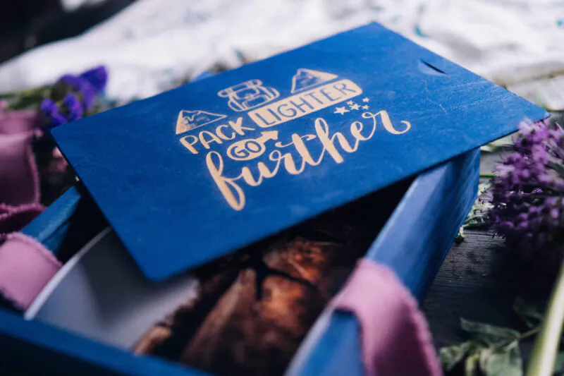 W cenę wlicza się: drewniane pudełko na zdjęcia, spersonalizowany grawer laserowy na zasuwce, malowanie.