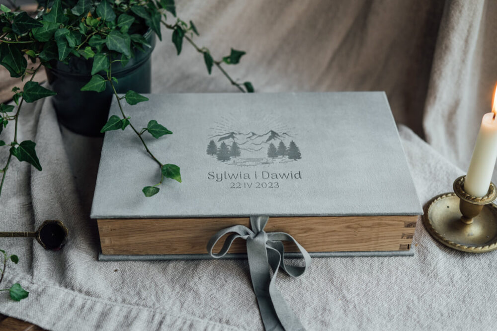 Konfiguruj produktOdkryj nasze wyjątkowe pudełko na fotografie, zaprojektowane z myślą o miłośnikach piękna i minimalizmu. Wybraliśmy welur, bo to bardzo miękki w dotyku materiał, który chciałoby się głaskać bez przerwy. 🙂 Paleta barw została starannie dobrana z naciskiem na pastelowe i lekko zgaszone kolory. Dzięki temu w połączeniu z delikatnym grawerem i solidnym dębem tworzą razem eleganckie trio. Dostępne warianty kolorystyczne są spokojne i subtelne, pudełko świetnie nadaje się do przechowywania zdjęć z klasycznych i eleganckich ślubów, sesji kobiecych oraz dziecięcych.