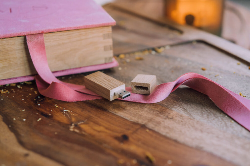 USB: Drewniany pendrive płaski – dębowy. Kolor USB dobierany jest do wybranego koloru drewna podczas personalizacji pudełka. Dostępne odcienie to: dąb naturalny, dąb rustykalny. Wewnątrz znajduje się solidna elektronika marki Goodram o prędkości zapisu 3.0. USB sprzedawane jest z zatyczką. Za dopłatą możemy dodać grawer na USB z obu stron. Każde USB jest unikatowe, to praca ludzkich rąk 🙂