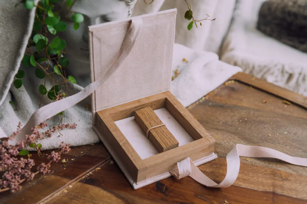 Za dodatkową opłatą do pudełka można dobrać drewniany pendrive.